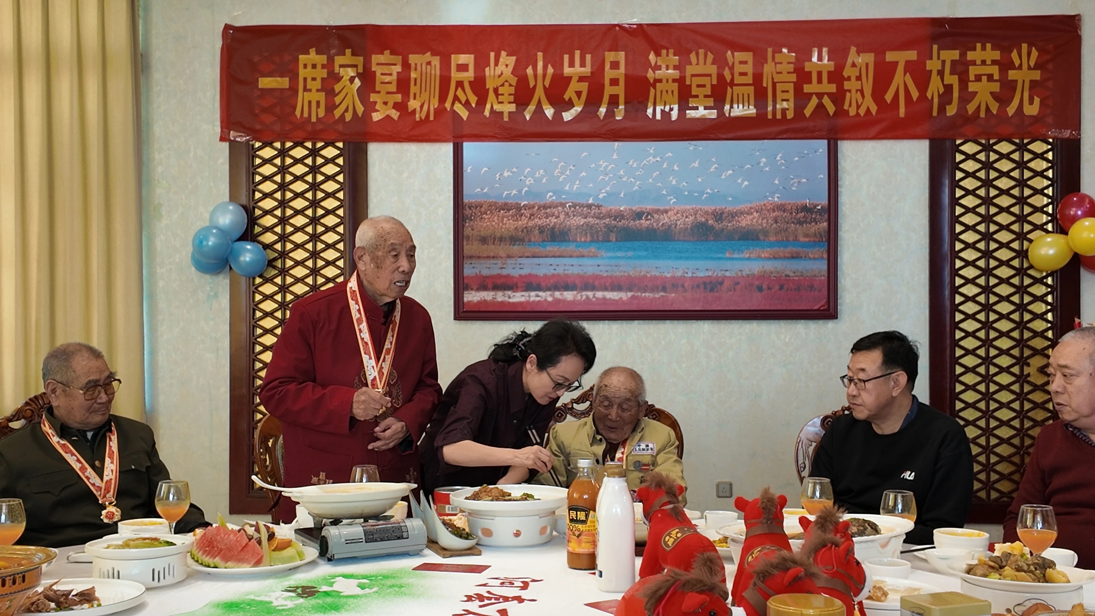 家宴简朴,情谊深长。会场内“一席家宴聊尽烽火岁月,满堂温情共叙不朽荣光”的条幅,道出这场聚会的初心。看着老英雄们精神矍铄、身板硬朗,在场人员倍感欣慰。任海韬动情地说:“能和英雄们吃顿家常饭,是我们长久的心愿。你们当年在烽火硝烟中保家卫国,为共和国立下的不朽功勋,我们永远铭记在心。”她表示,照顾好老英雄是退役军人事务部门义不容辞的责任,“老兵微心愿”就是要将社会尊崇化为实实在在的陪伴,从一餐一饭、一份关怀做起,把服务保障工作做细做实,让老兵晚年过得踏实、舒心、有尊严。