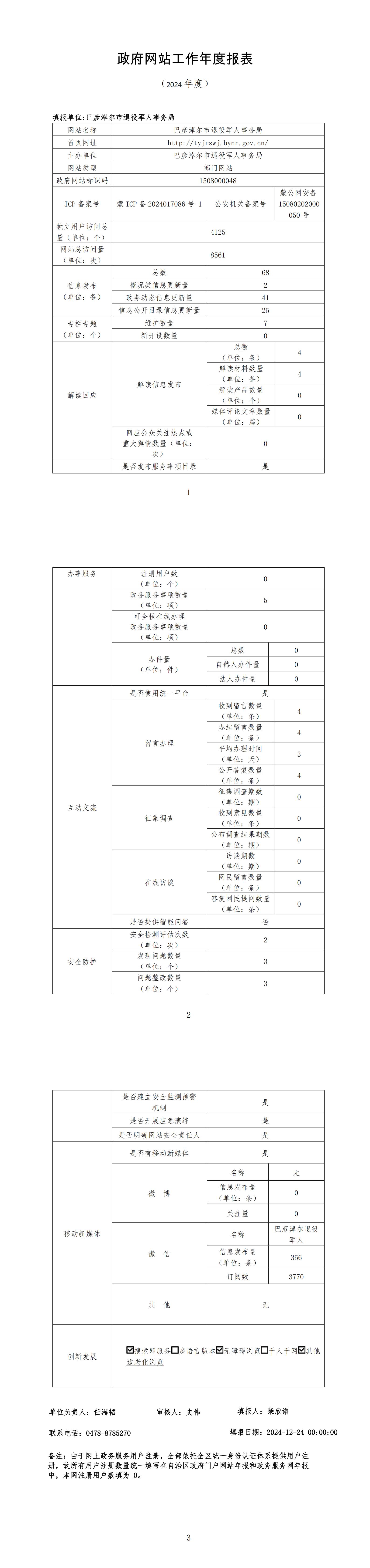2024年巴彦淖尔市退役军人事务局政府网站工作年度报表