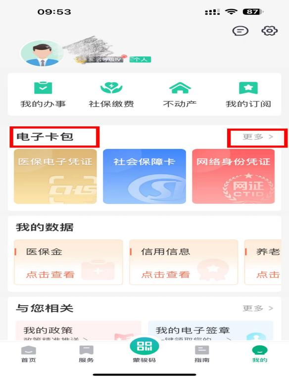 第二步:点击“电子卡包”——“更多”。
