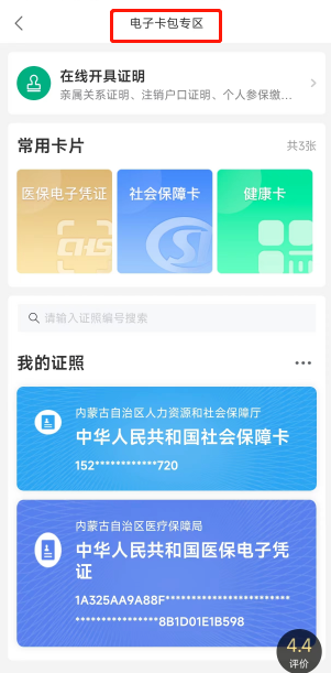 第三步:进入“电子卡包专区”查看“我的证照”。